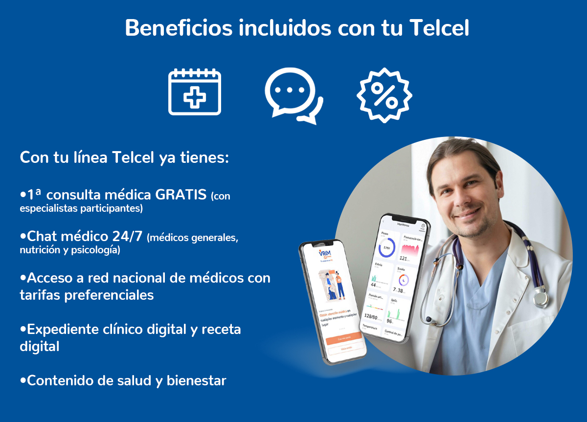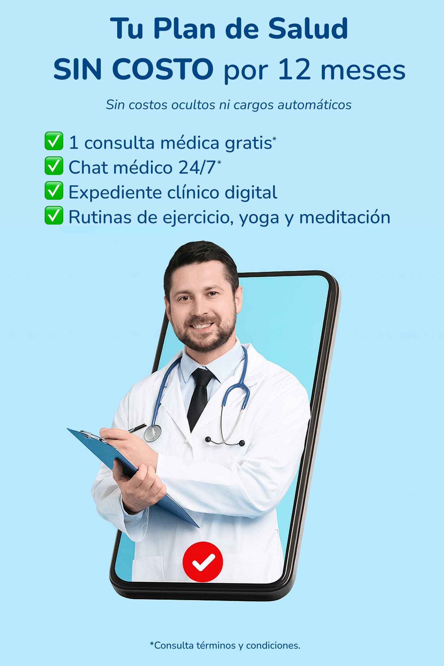 ✅ Chat médico en línea para resolver tus dudas de salud al instante. ✅ 1ra consulta de especialidad totalmente gratis. ✅ Red de médicos especialistas con precios preferenciales en todo México. ✅ Farmacia en línea con descuentos exclusivos. ✅ Expediente clínico digital y receta electrónica.